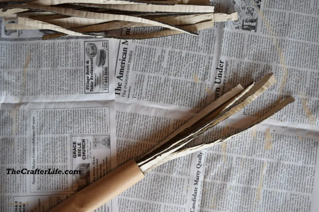 2. After the paint has dried, cut about 20 strips from your cardboard that are around ½ inch wide and 14 inches long. The strips do not have to be the exact same width. Mine varied in size because I did not use a ruler when cutting.